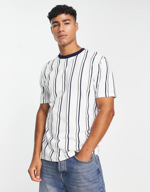 River Island - T-shirt slim à rayures - Bleu marine