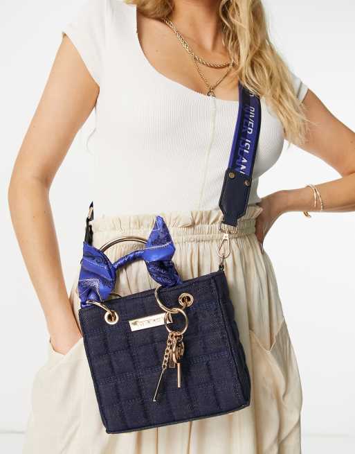 River Island - Tote bag matelassé à détail foulard - Bleu marine