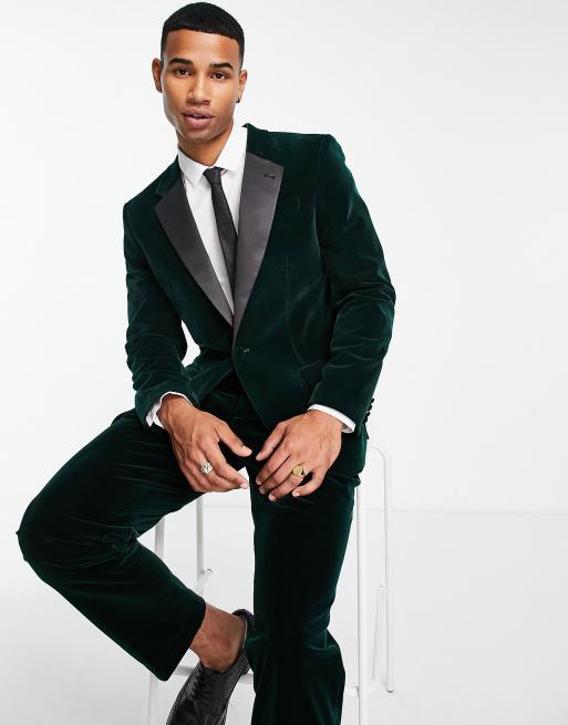 River Island - Veste de costume ajustée en velours - Vert foncé