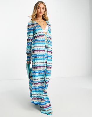 River Island - Vêtement d'ensemble de plage en maille zigzag - Bleu