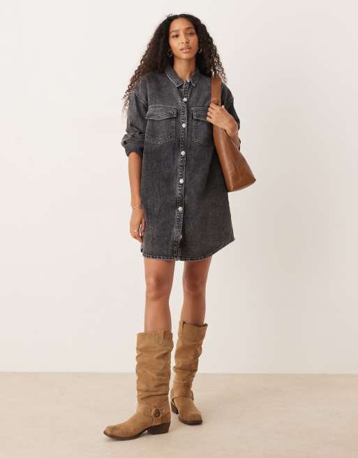 Roxy - Tidal Moon - Robe chemise courte en jean à manches longues - Gris moyen