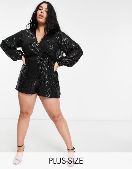 Saint Genies Plus - Combishort en sequins à manches ballon - Noir