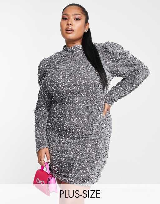 Saint Genies Plus - Robe courte ornée de sequins à manches longues - Argenté