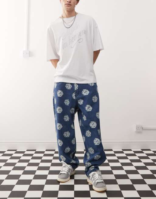 Santa Cruz - Big - Jean baggy à imprimé dés - Bleu foncé délavé