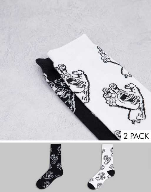 Santa Cruz - Lot de 2 paires de chaussettes avec motif mains - Noir/blanc