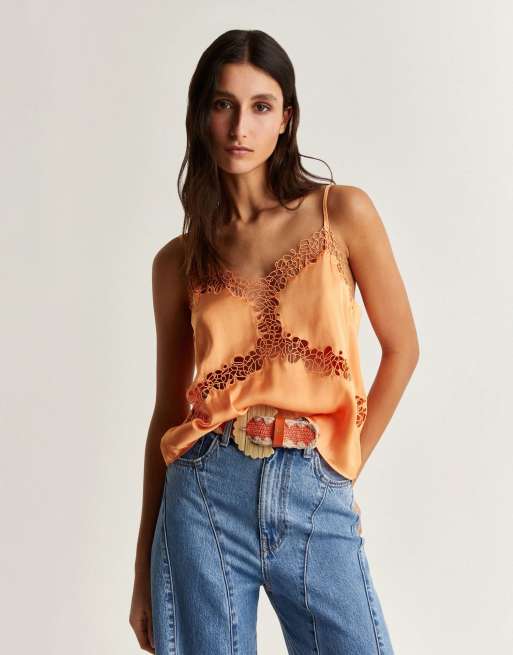 Scalpers - Caraco satiné à détail ajouré - Orange