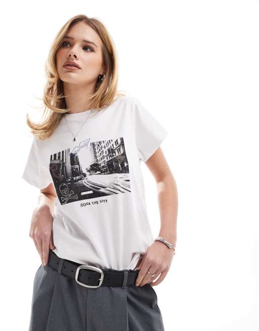 Scalpers - T-shirt à strass et imprimé ville - Blanc