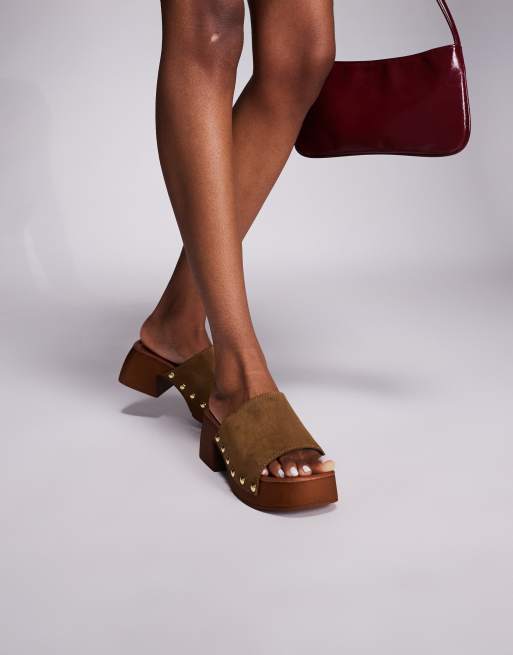 Exclusivité - schuh - Via - Sandales style sabot à talon en daim - Kaki