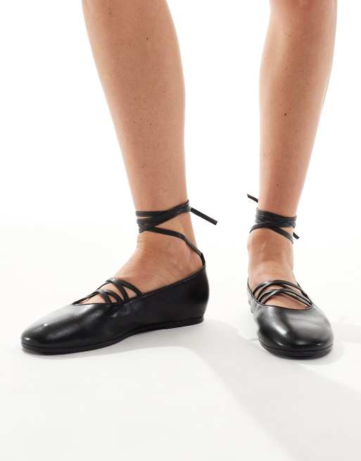 schuh - Lars - Chaussures plates à bout pointu et détail noué - Noir