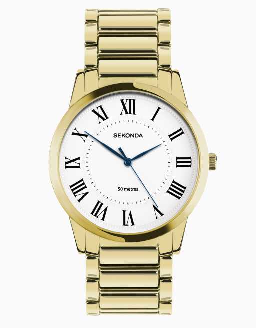 Sekonda - Beaumont - Montre classique pour homme avec boîtier 40 mm, bracelet doré en alliage et cadran blanc - Doré