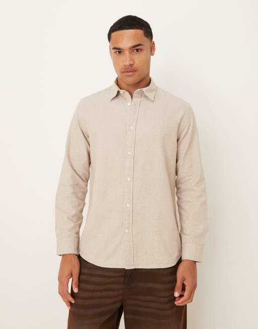 Selected - Chemise oversize coupe carrée en coton effet brossé - Crème