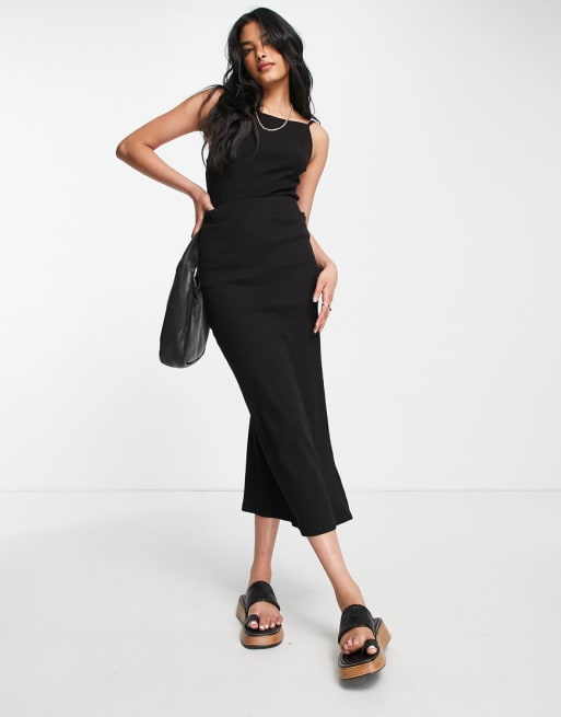 Selected Femme - Ensemble avec haut et jupe en coton biologique nervuré - Noir