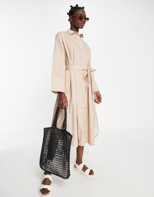 Selected Femme - Ensemble avec robe chemise longue et combinaison en coton rayé