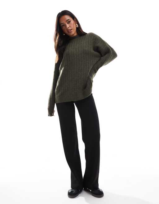 Selected Femme - Pull ras de cou texturé en laine de mérinos et alpaga mélangée - Vert
