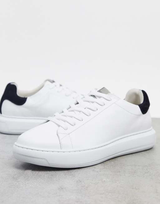 Selected Homme - Baskets en cuir de qualité supérieure avec semelle chunky et contrefort contrastant