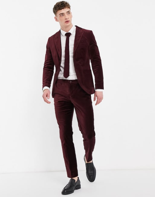 Selected Homme - Costume ajusté en velours - Bordeaux