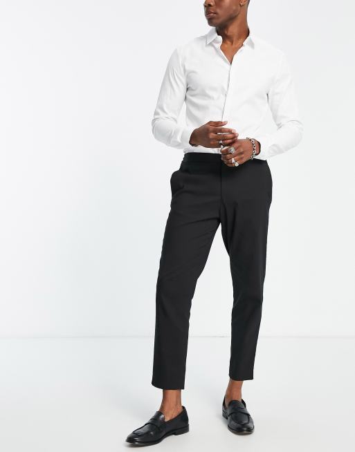 Selected Homme - Pantalon habillé court coupe ajustée avec taille élastique - Noir