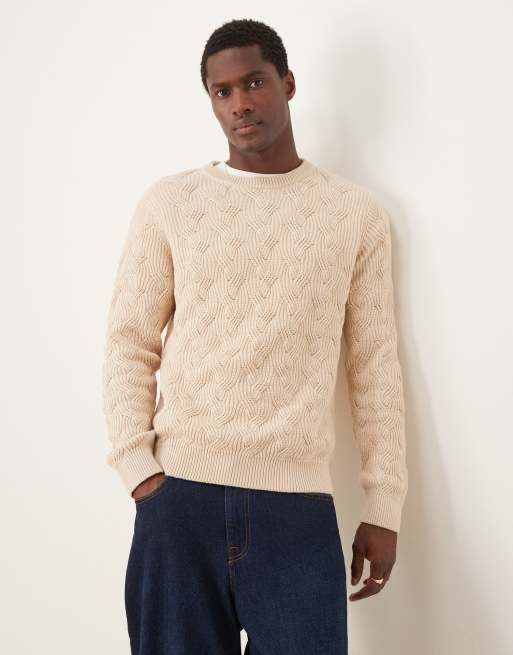 Selected Homme - Pull ras de cou en maille structurée épaisse - Crème