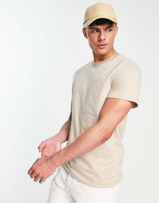 Selected Homme - T-shirt en coton rayé - Beige - BEIGE