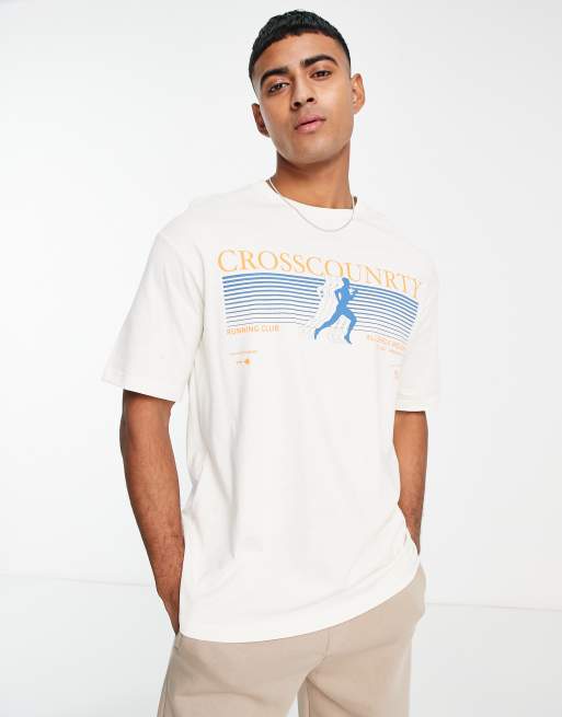 Selected Homme - T-shirt oversize à imprimé course - Beige