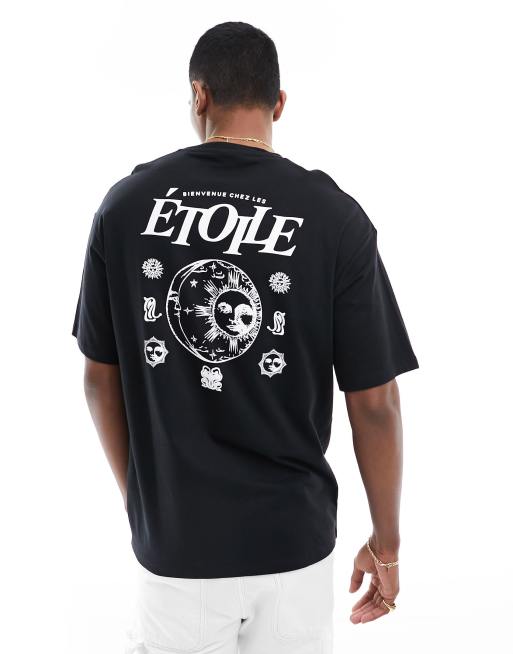 Selected Homme - T-shirt oversize avec imprimé étoile et lune au dos - Noir
