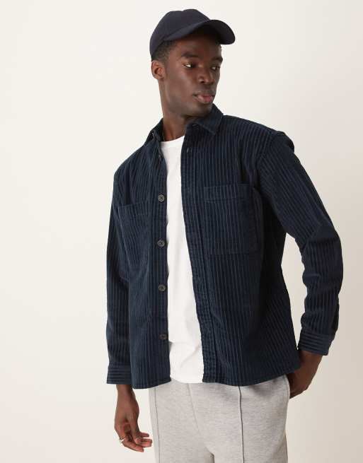 Selected - Surchemise en velours côtelé à fines rayures - Bleu marine
