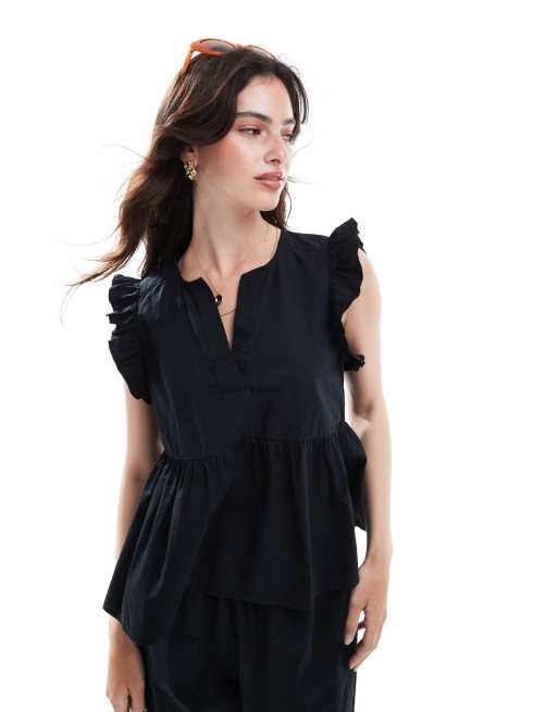 Selected - Top d'ensemble à volants - Noir