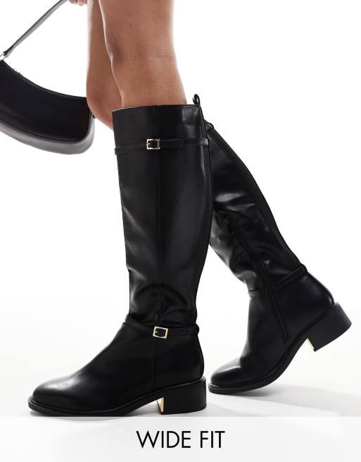 SEQWL - Bottes cavalières larges plates et montantes - Noir