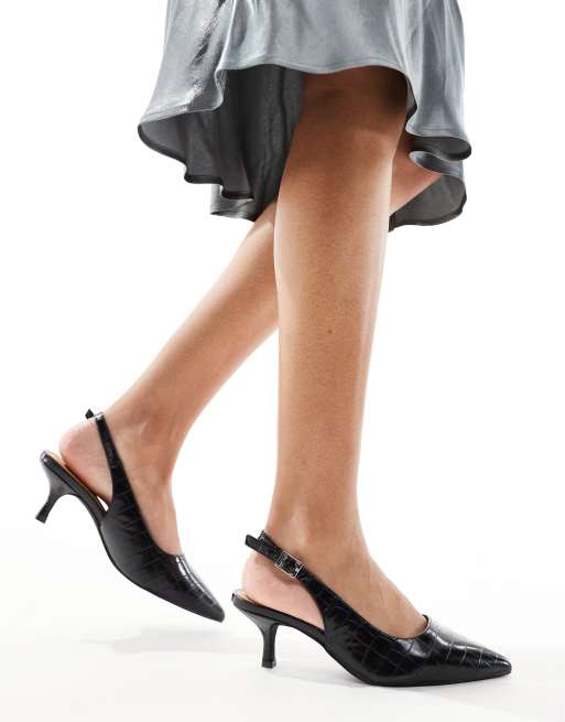SEQWL - Escarpins pointus pointure large à petit talon et bride arrière - Noir