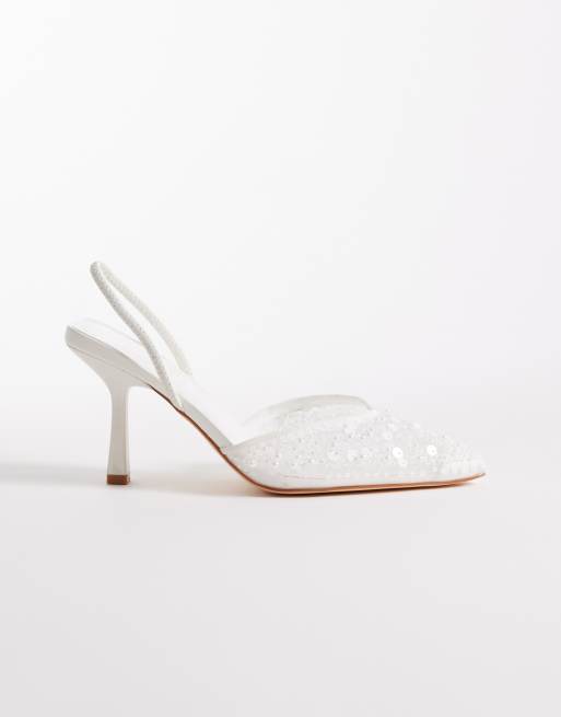 SEQWL Wide Fit - Salado - Chaussures ornementées à talon et bride arrière - Blanc