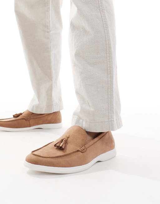 SEQWL - Berwin - Mocassins en imitation daim à pampilles et semelle contrastante - Marron
