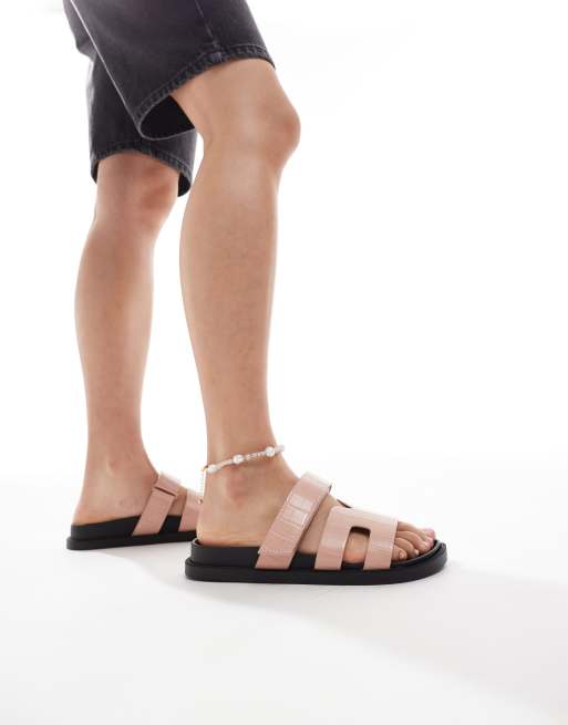 SEQWL - Sandales en similicuir à brides - Rose