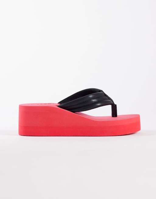 SEQWL - Tongs à semelle plateforme - Rouge et noir