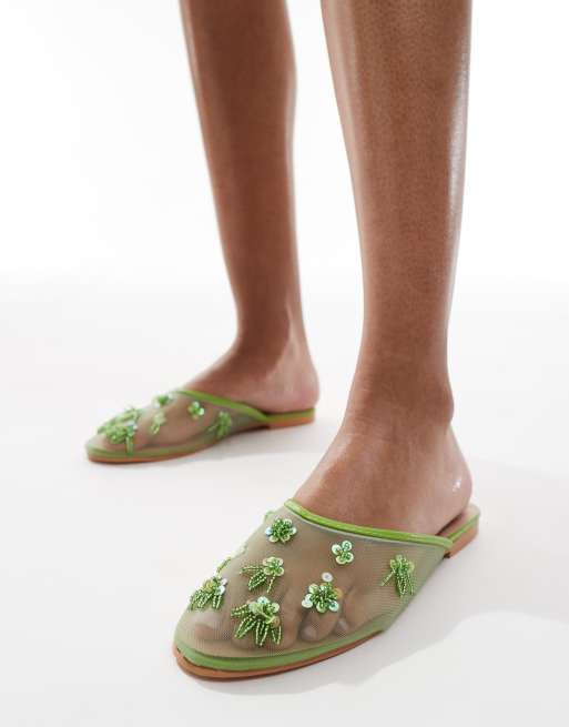 SEQWL - XY - Sandales ornementées en tulle - Vert