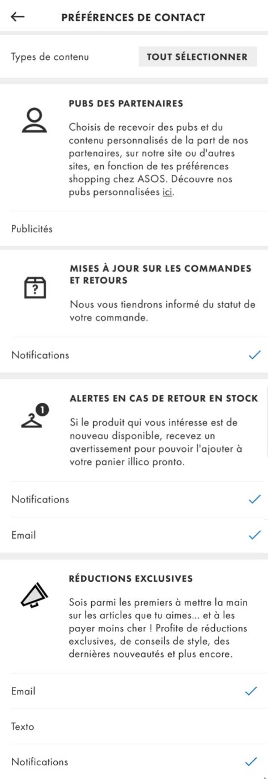 Vous utilisez l'appli ASOS? Vous pouvez vous abonner aux notifications push sur votre appareil. Voici comment procéder :