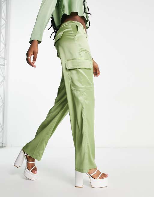 Signature 8 - Pantalon cargo droit en satin - Vert