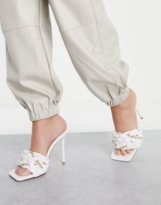 Simmi London - Brandy - Mules à talon avec chaînes décoratives - Blanc