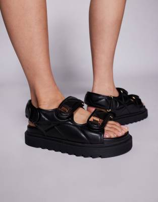SIMMI London - Eboni - Sandales plates chunky en PU - Noir