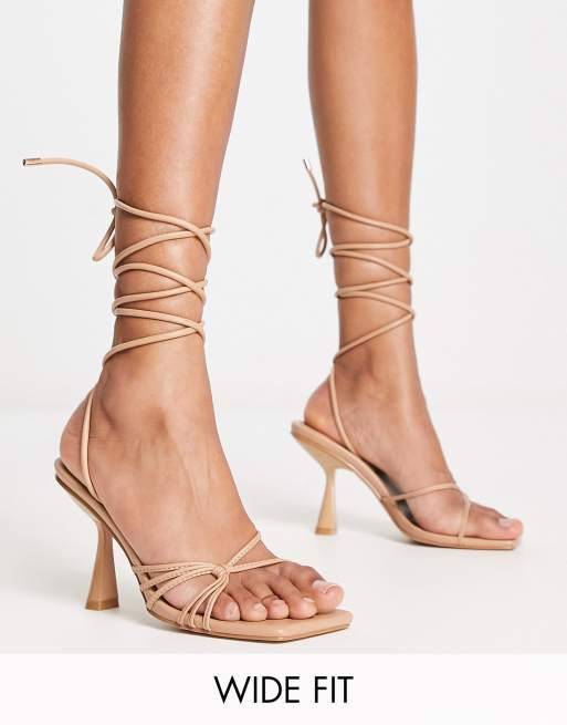 Simmi London - Alamo - Sandales larges à talon mi-haut et liens sur la cheville - Beige