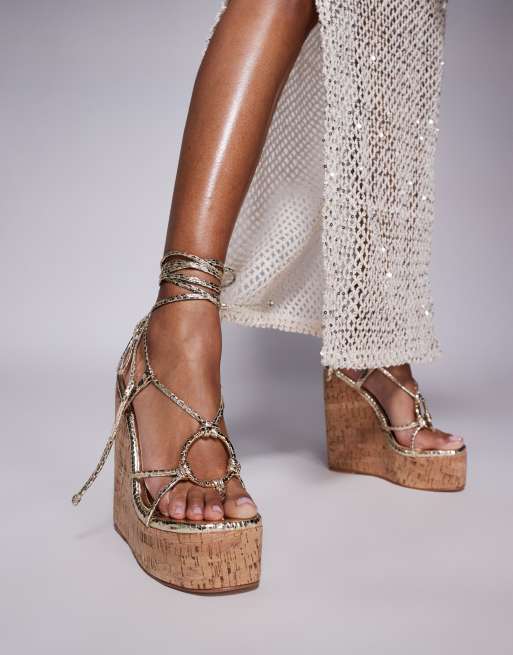 SIMMI London Wide Fit - Jadey - Chaussures compensées à lanières et talon haut - Doré