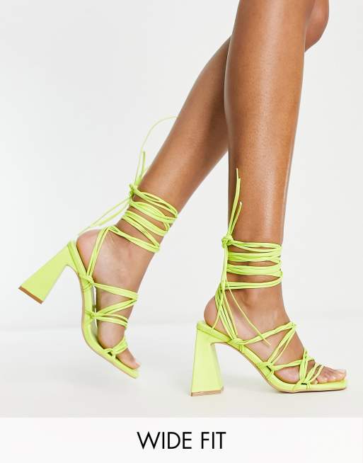 SIMMI London Wide Fit - Paris - Sandales à talon avec liens noués à la cheville - Citron vert