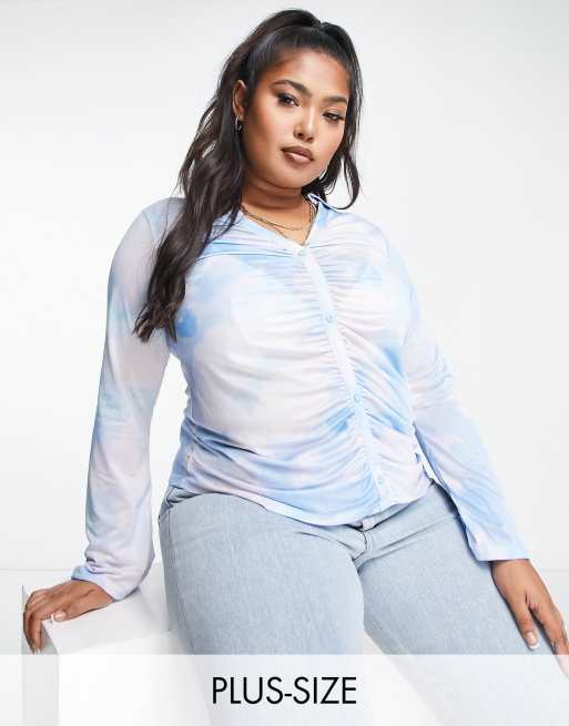 Simply Be - Chemise boutonnée froncée à l'avant - Bleu