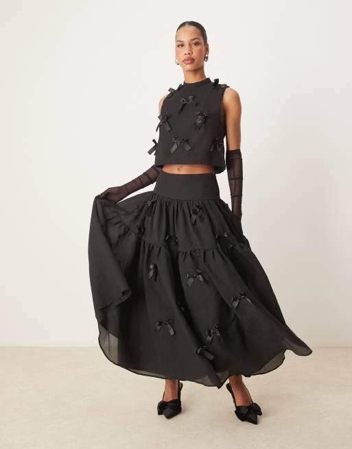 Sister Jane - Jupe mi-longue d'ensemble avec nœuds - Noir