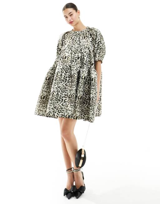 Sister Jane - Robe courte à volants en jacquard - Léopard métallisé