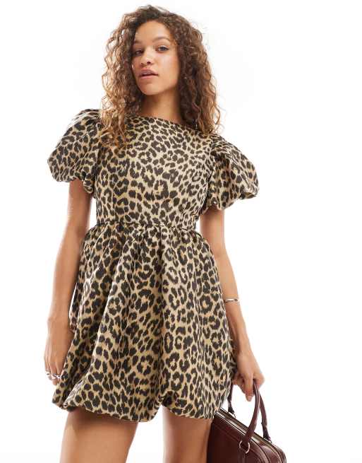 Sister Jane - Robe courte boule en jacquard à manches bouffantes - Léopard