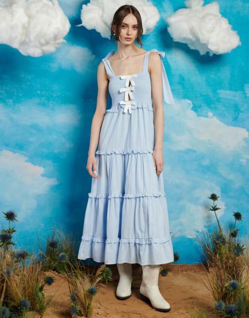 Sister Jane - Robe longueur mollet à rayures et détails nœuds - Bleu