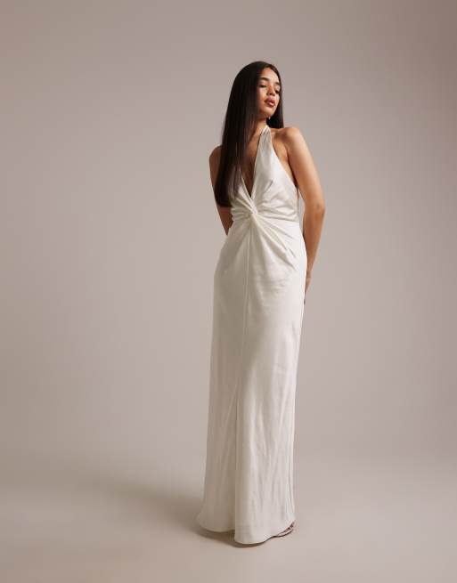 Six Stories - L'invitée - Robe longue à décolleté plongeant avec nœud - Ivoire