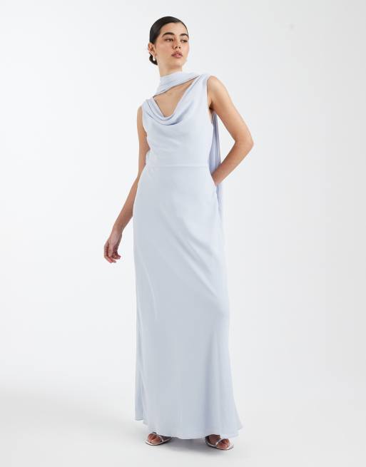 Six Stories - Robe longue de demoiselle d'honneur en crêpe à col bénitier plongeant - Bleu pâle