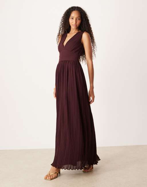 Six Stories - Robe longue et plissée à décolleté plongeant - Lie-de-vin