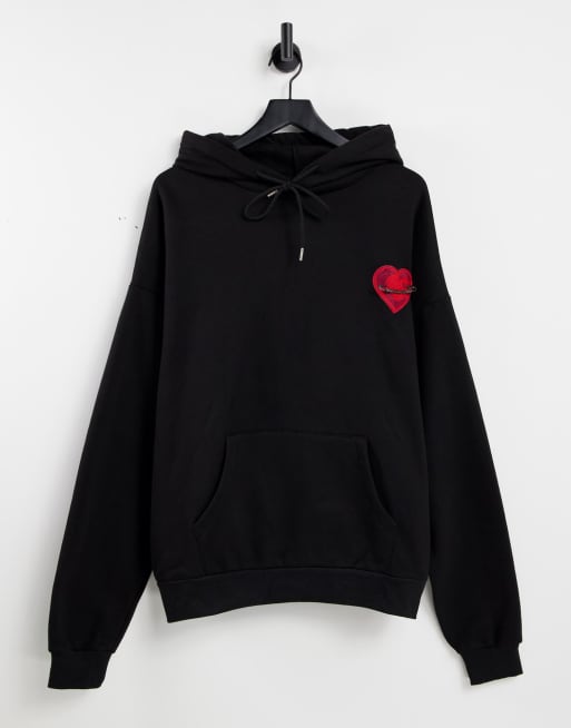 Sixth June - Sweat à capuche oversize avec épingle et motif cœur - Noir